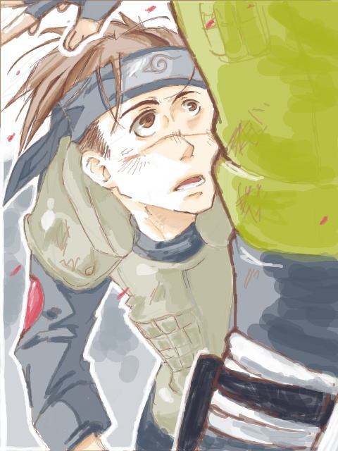イルカ先生、力持ちだわ~~。カカシじゃなくてもジェラシー。怪我人を抱えてる先生の手が~~っ