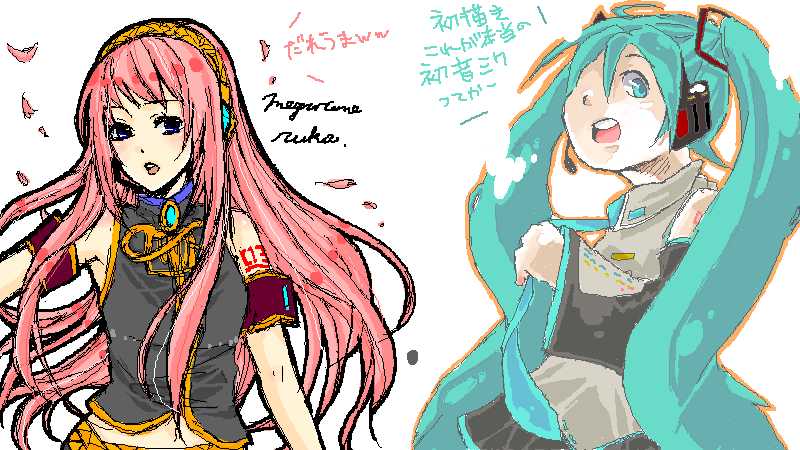 有さんとの合作絵チャ!!左のルカちゃんが有さん、右のミクが私です。