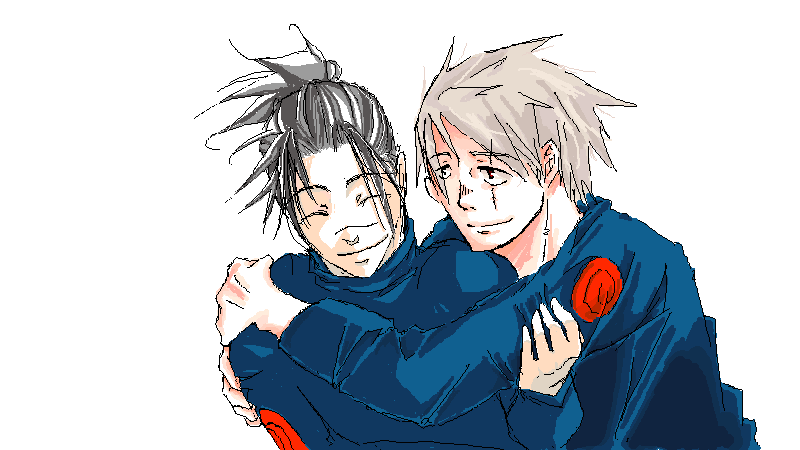 どんなんにするか構図練ろうぜ!朔さんのイルカ先生可愛いぜ!うちのカカシが鼻血だして
