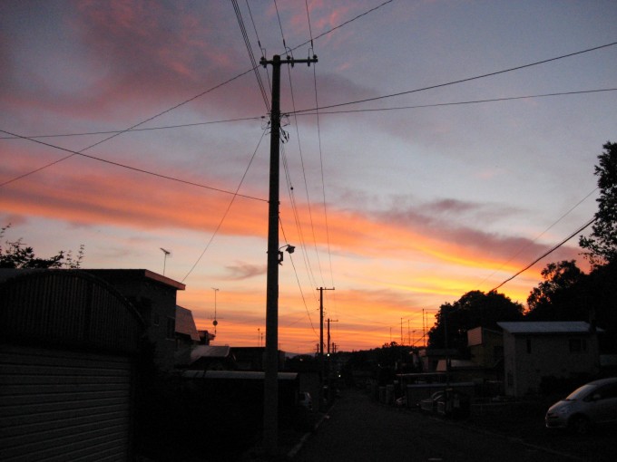 部屋の反対側から光が来ているので(私の部屋は西側なので)、移動して窓から顔を出したら