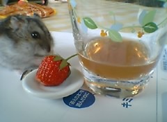 写真はとても元気だった頃。いちごが似合うねず公。